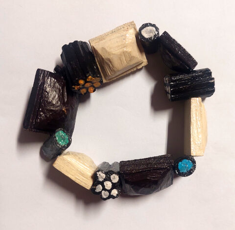 Chocolate and liquorice, made for an event with the theme black and white. Not a very kandi-y theme, but I wanted to wear some kandi, so I decided to make it literally candy.