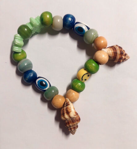 A friendship bracelet / souvenir I made just after my exchange, and using beads I got in the bazaar in Izmir. This green one is mine, the other two are in slightly different colors.